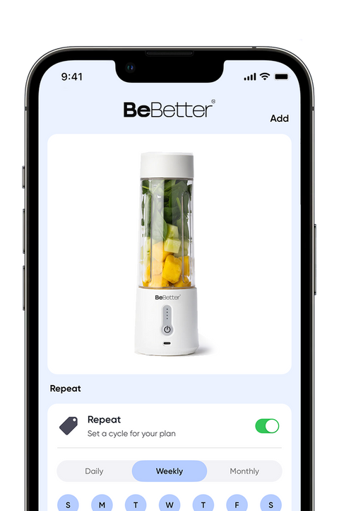 Pair your BeBetter Blender with our App through AI, and pick up a goal of what nutrients you want to consume every day, and receive regular notifications.